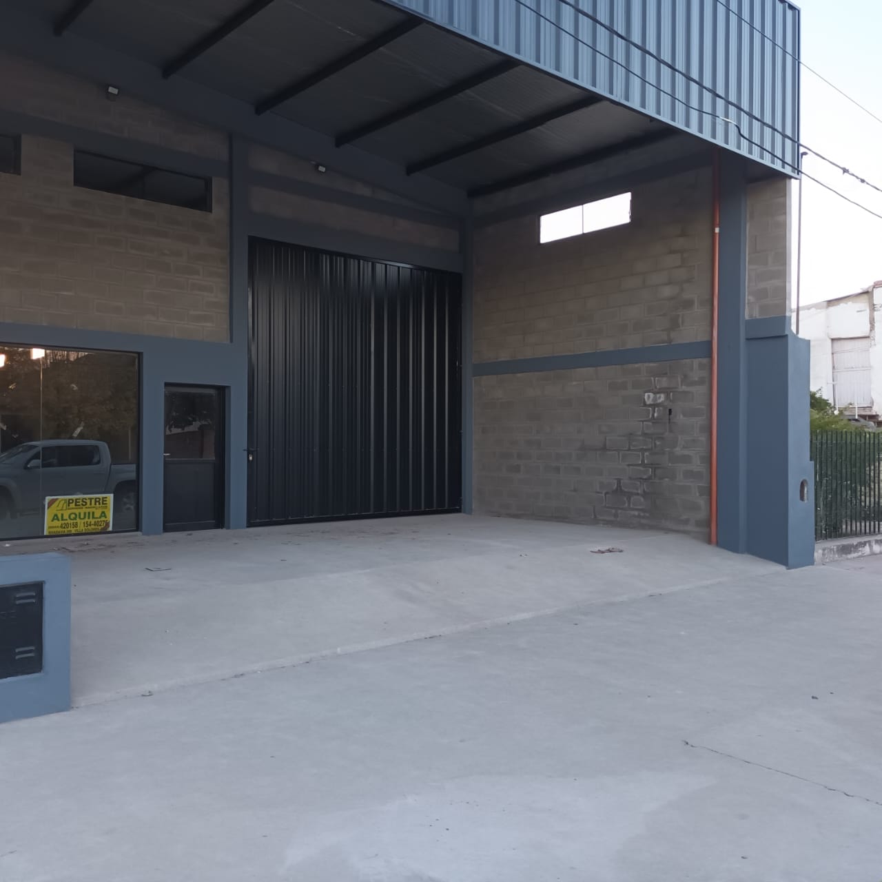 Descripción: Importante Galpón/deposito a estrenar, con frente vidriado, estacionamiento en el frente, Amplio portón, 2 baños. 100% cerrado.